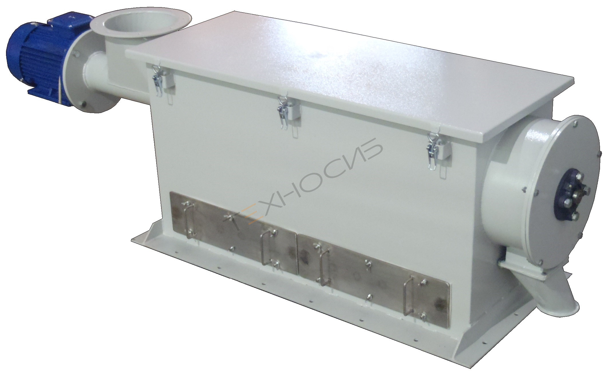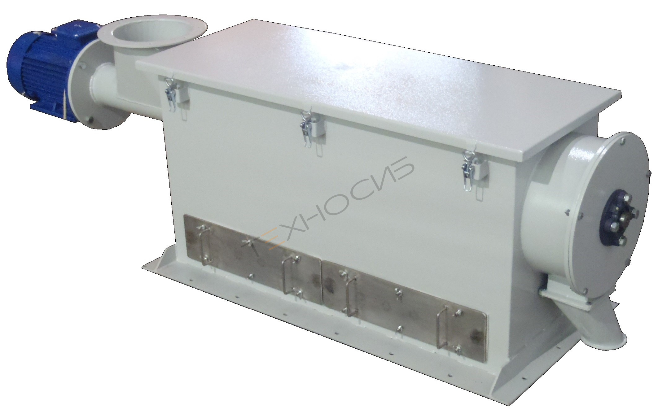 Принцип действия мукопросеивателя МПВЕ-3При включенном мукопросеивателе мука из мешков подаётся в загрузочную воронку. Далее мука поднимается вертикальным шнеком в просеивающую головку, где проходит через сито и через магниты. Просеянная мука, освобождённая от металлических примесей, высыпается из выходного патрубка в последующее технологическое оборудование.