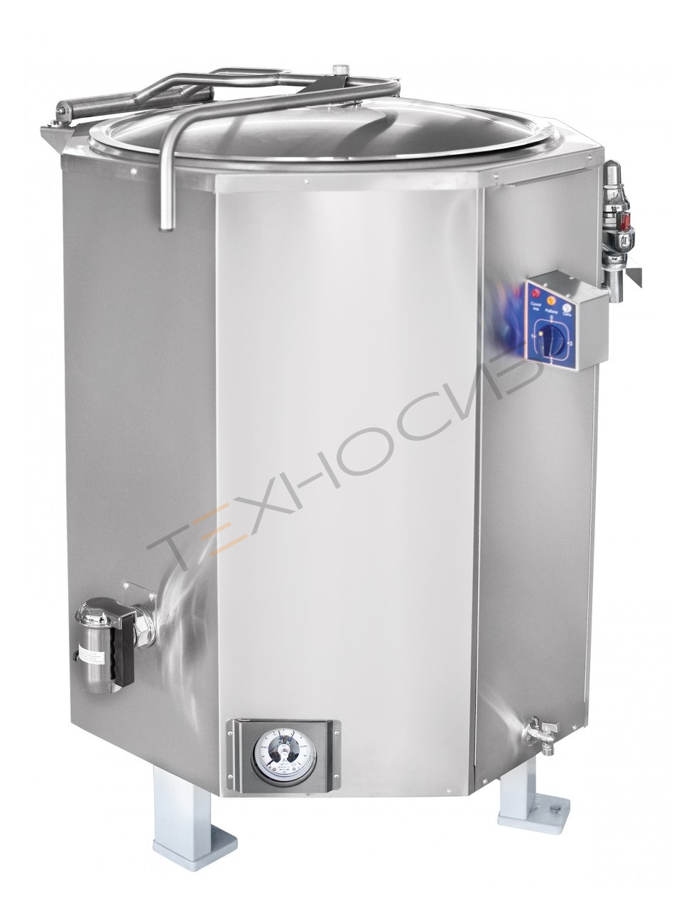Объем котла составляет 400 литров. Три режима работы. Слив готового продукта осуществляется краном большого диаметра на лицевой панели. Удобная ручка крышки котла фиксируется в любом положении. Нагрев воды осуществляется способом "пароводяной рубашки". При отсутствии воды в "пароводяной рубашке" срабатывает автоматическое отключение нагрева.