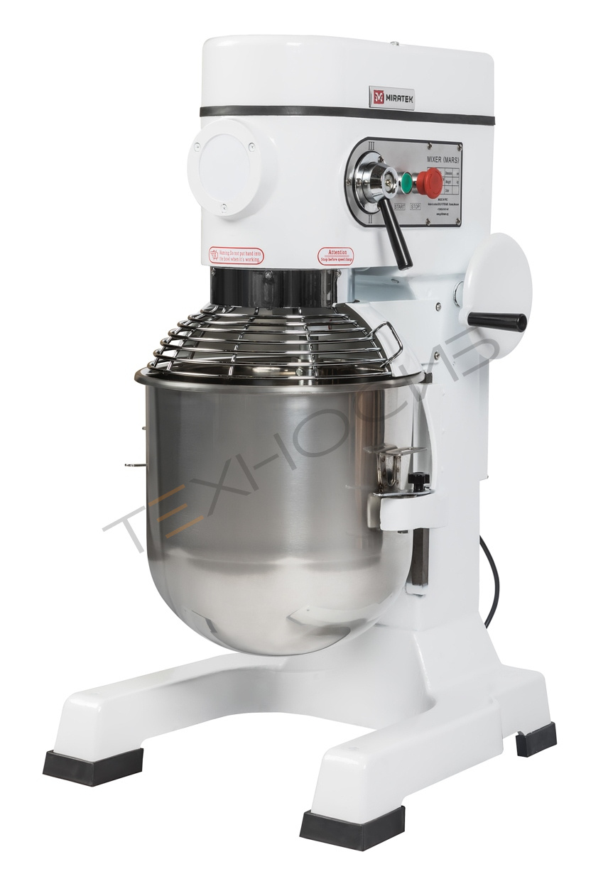 Планетарные миксеры Miratek имеют несколько уровней регулировки скорости и насадки разного типа, которые могут быть выбраны для замешивания теста, кремов (белкового, заварного, масляного и т.д.), суфле, муссов, бисквитного, песочного, дрожжевого (с высокой влажностью), блинного, заварного теста.