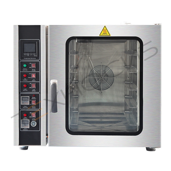 - Двухрежимная система циркуляции воздуха — естественная и принудительная — гарантирует равномерный прогрев всех ярусов и формирование аппетитной золотистой корочки