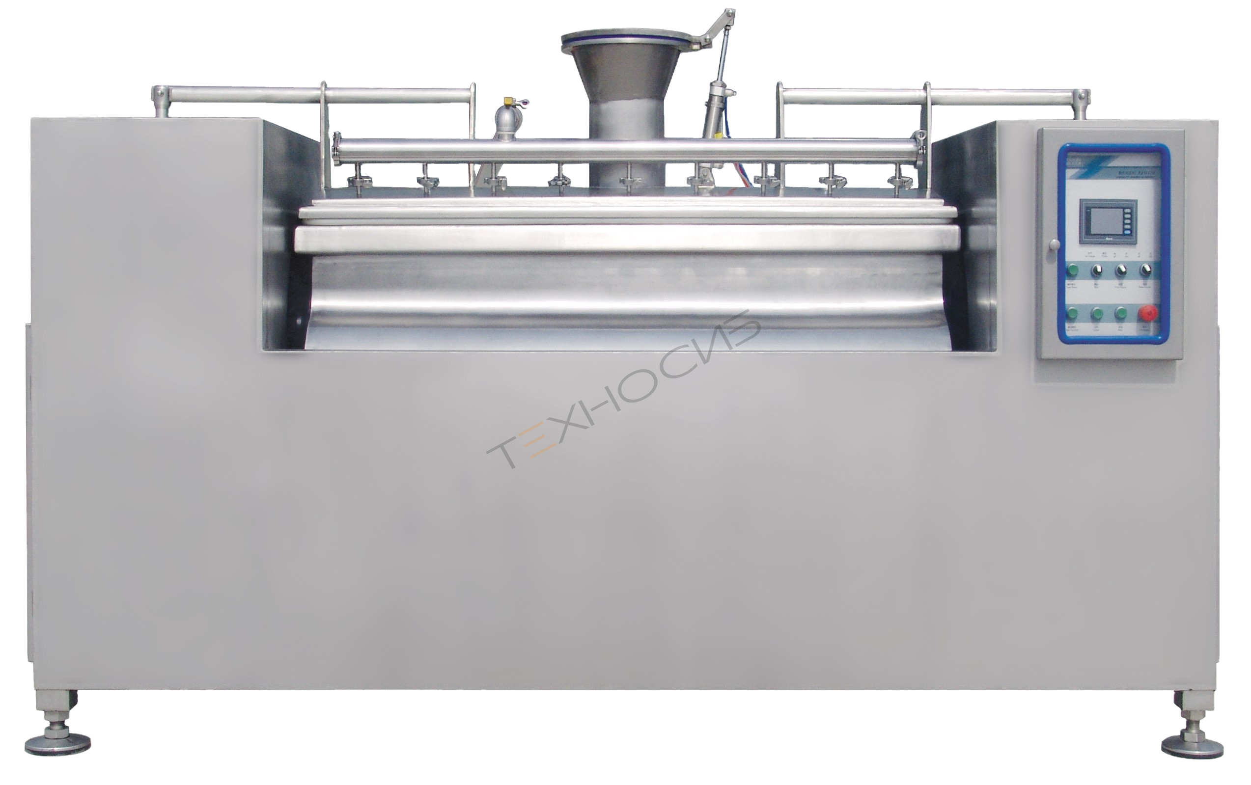 - Конструкция включает три ключевых узла: месильный орган, дежу и привод — надежная компоновка для промышленной эксплуатации.
