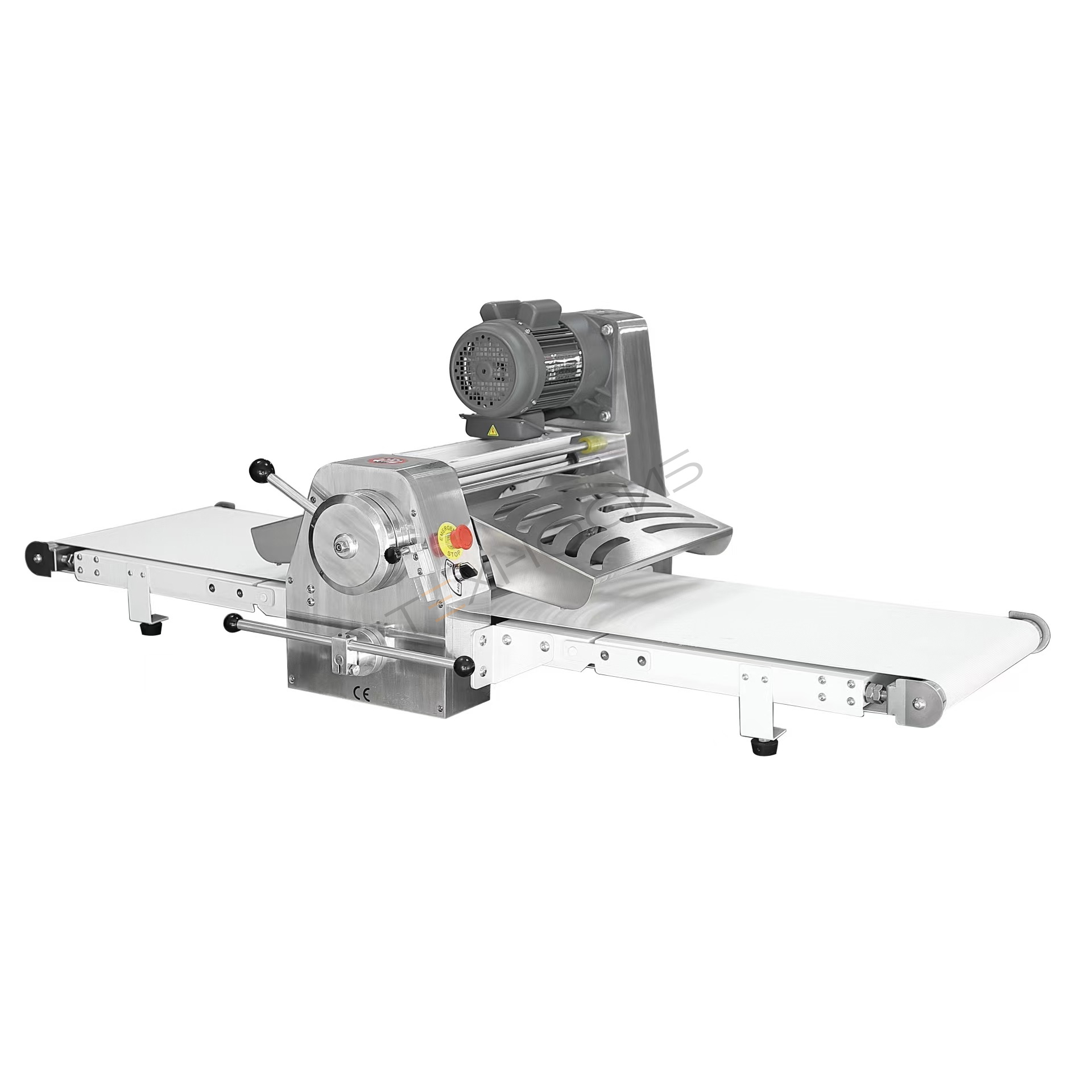 Раскатка теста выполняется в двух направлениях, направление задается ручным переключением соответствующего рычага. Толщина раскатки определяется зазором между рабочей поверхностью и валом раскатки (также в ручном режиме) и составляет от 1 до 35 мм.