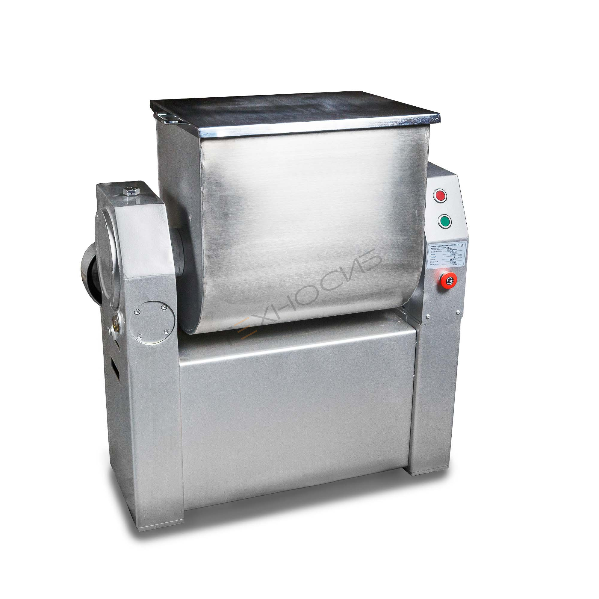 Машина выполнена на прочной металлической раме, обеспечивающей стабильность при работе. Дежа, крышка и все контактирующие с продуктами детали изготовлены из пищевой нержавеющей стали, что соответствует санитарным требованиям. Спиральная конструкция рабочего инструмента с лопастями равномерно распределяет компоненты по всему объему, создавая однородную массу без комков и неперемешанных участков.