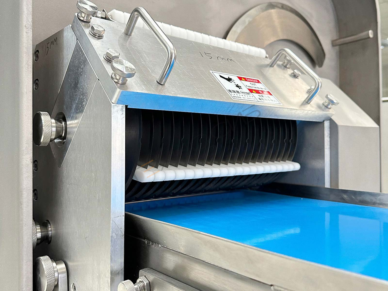 Режущий блок (дисковые и продольные ножи) проходит специальную термическую обработку, обеспечивая высокую прочность, остроту и износостойкость. Это гарантирует ровный и аккуратный срез продукции без потерь.