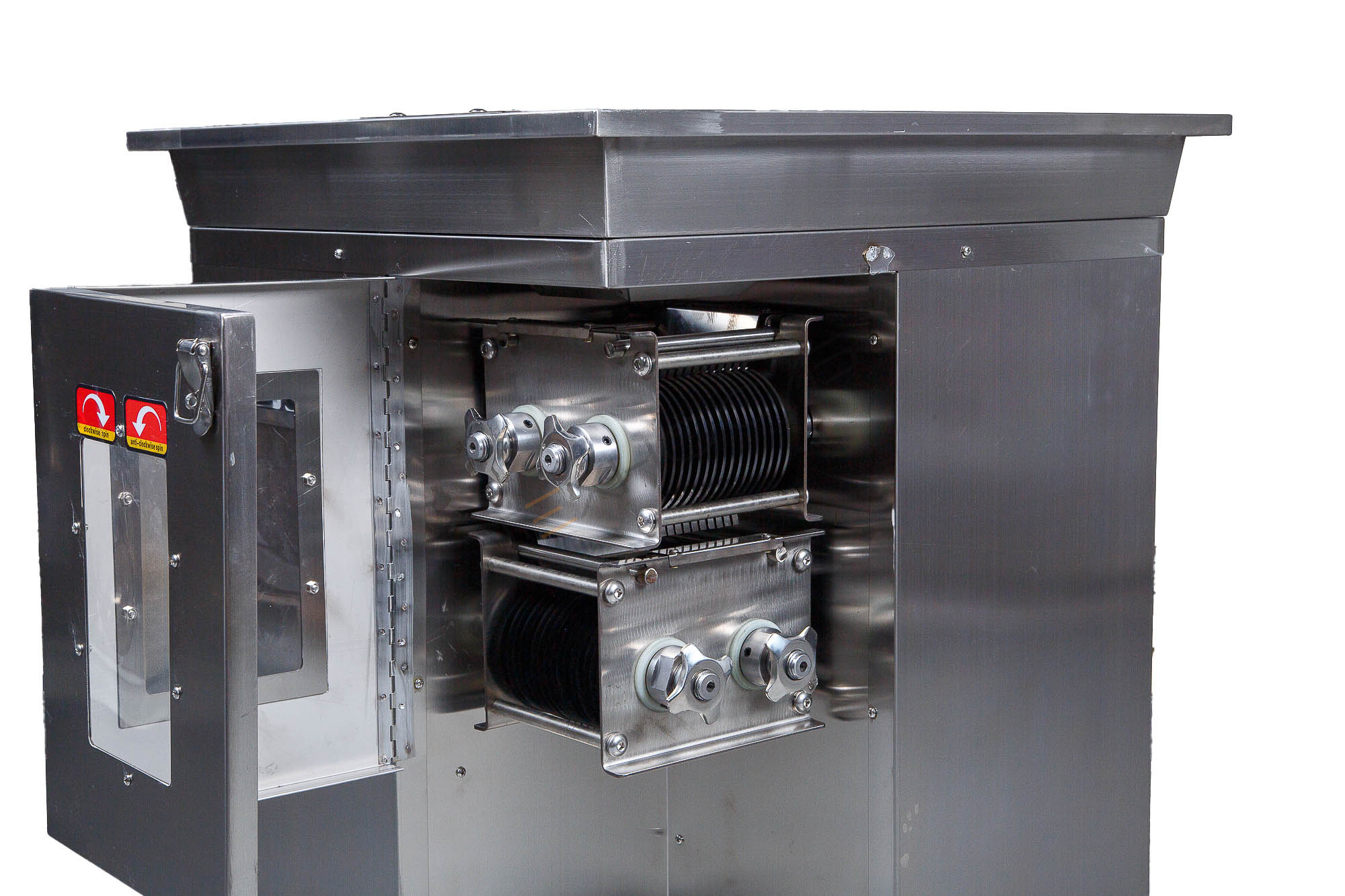 Аппарат оснащен долговечными качественными ножами. Лезвия ножей имеют специальную заточку, обеспечивающую аккуратный, ровный срез. Двойная конструкция ножа позволяет нарезать мясо на ломтики равномерной толщины.