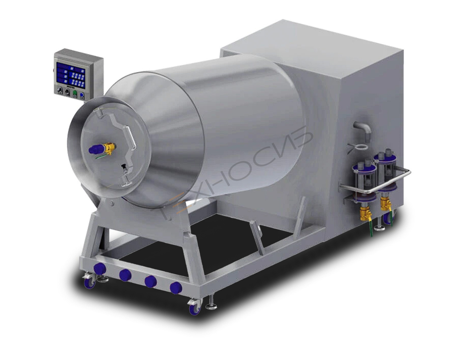 - особая форма внутренних ребер рабочего бункера – позволяет бережно и эффективно выполнять процесс массирования сырья различной консистенции, без нарушения целостности и ухудшения внешнего вида сырья. При этом обеспечивается должная степень размягчения волокон и проникновения рассола в ткани;