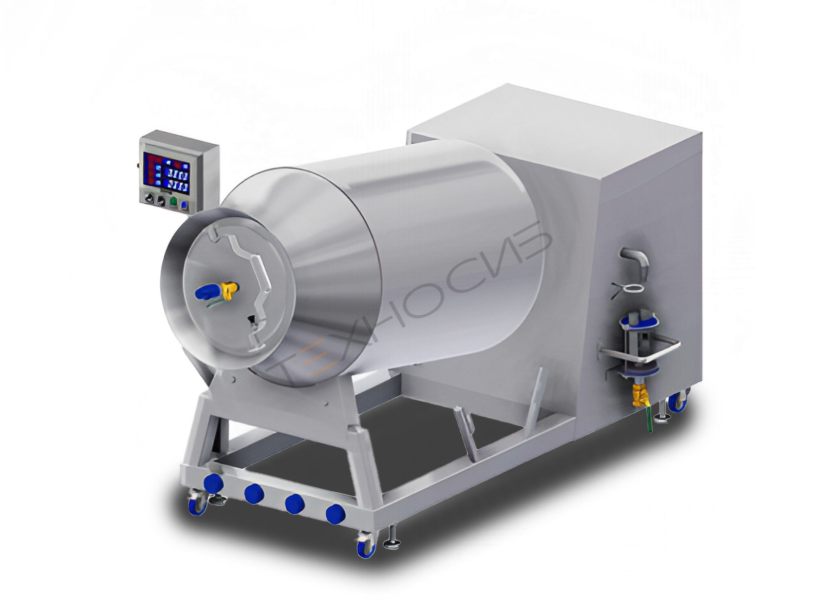 Наличие функции вакуумизации позволяет массировать продукты в вакууме или с чередованием вакуумной и атмосферной среды. Обработка в вакуумной среде замедляет процессы окисления, тем самым предотвращая размножение болезнетворных бактерий и сохраняя натуральный цвет сырья. Также применение вакуума позволяет повысить выход готовой продукции и уменьшить пористость готовых изделий.