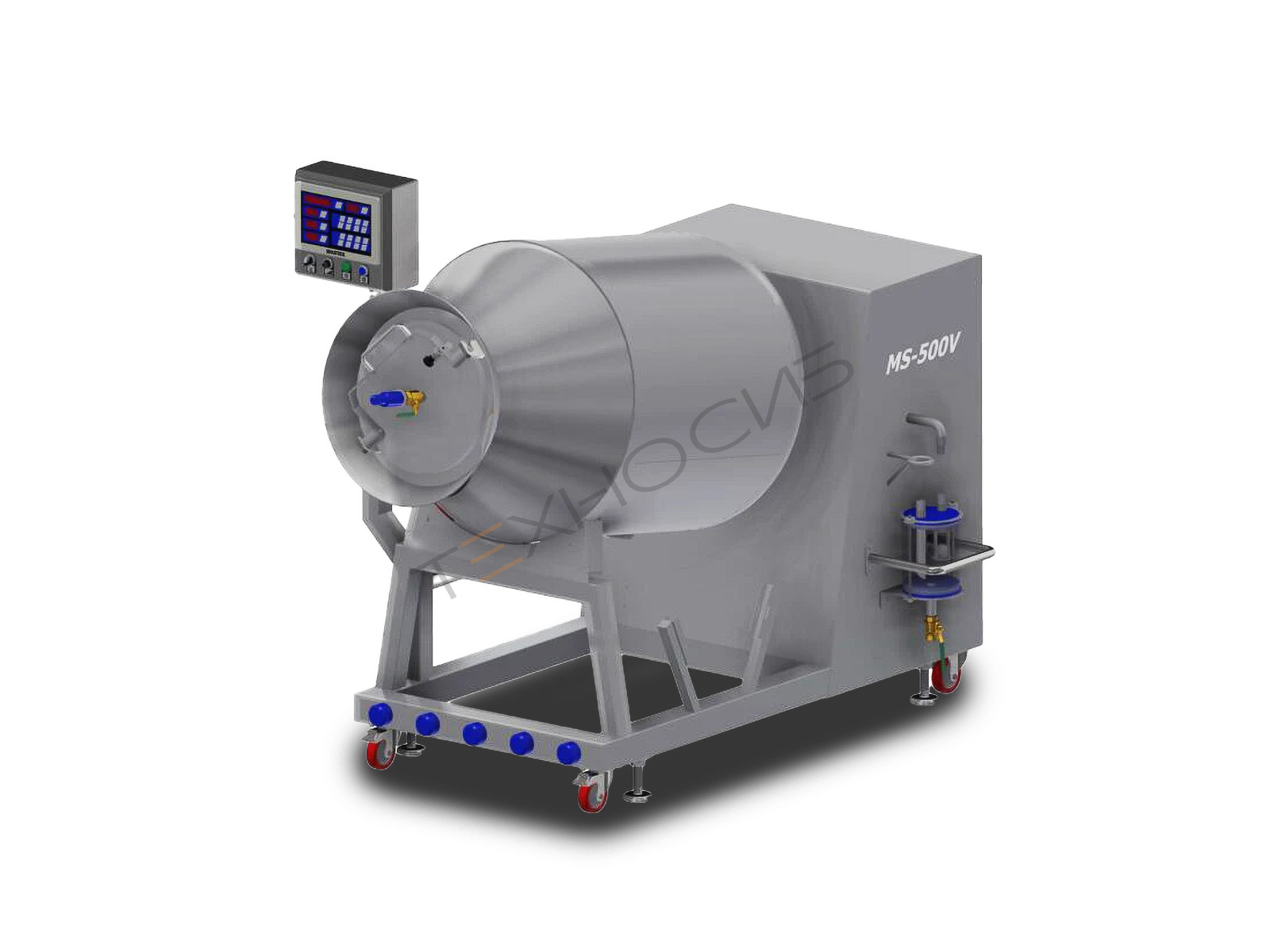 Вакуумный массажер GR 1000 предназначен для массирования мяса, рыбы, птицы в процессе маринования и посола. Это незаменимое оборудование при производстве копченых и вяленых деликатесов из мяса и птицы, а также при приготовлении различных полуфабрикатов – шашлыков, стейков, ребрышек, крылышек и различных наборов для гриля из мяса и птицы. Его также можно использовать для массирования свежего мяса перед термической обработкой. Это положительным образом сказывается на вкусовых свойствах готового продукта – мясо становится более нежным и мягким.