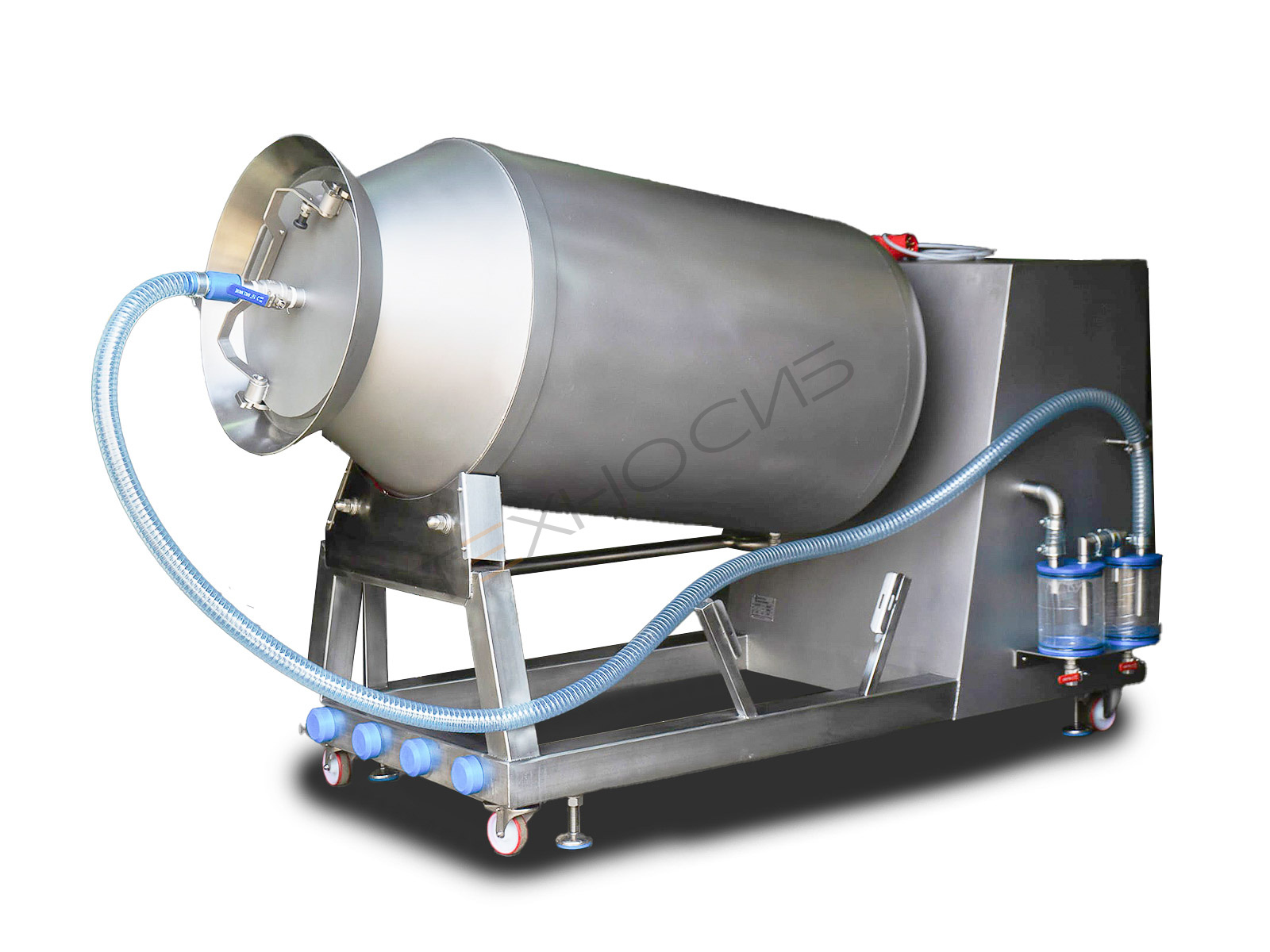 Оборудование полностью изготовлено из высококачественной нержавеющей стали, что обеспечивает долговечность и соответствие санитарным нормам. Модели объемом от 900 л оснащаются гидравлическим подъемным устройством для удобной загрузки. Стабильную работу вакуумной системы обеспечивает надежный и долговечный насос от лидера отрасли Busch.