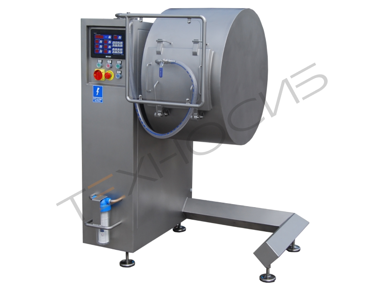 Принцип действия: Предназначенное для посола и массирования мясо загружается в резервуар со смесью для посола. После откачки воздуха из резервуара и программирования параметров технологического процесса начинается процесс массирования. После окончания массирования мясо под воздействием гравитации выпадает из резервуара в подставленный контейнер.