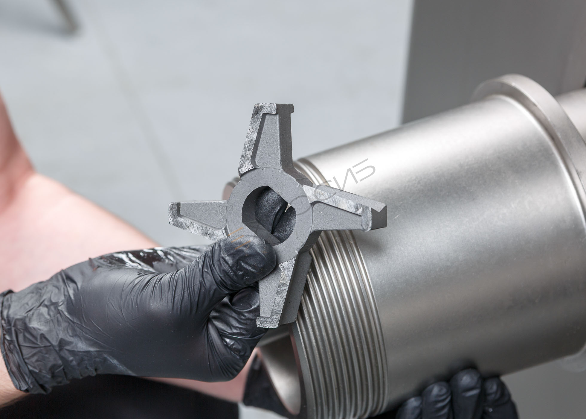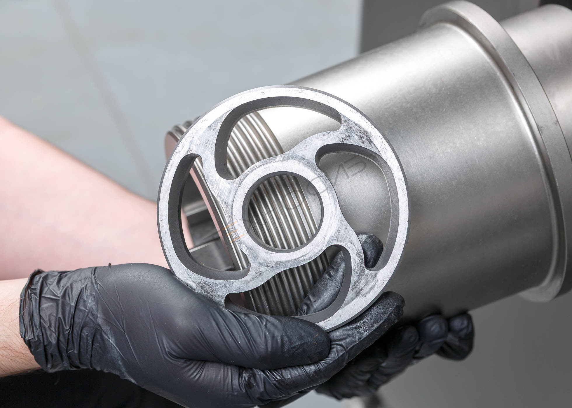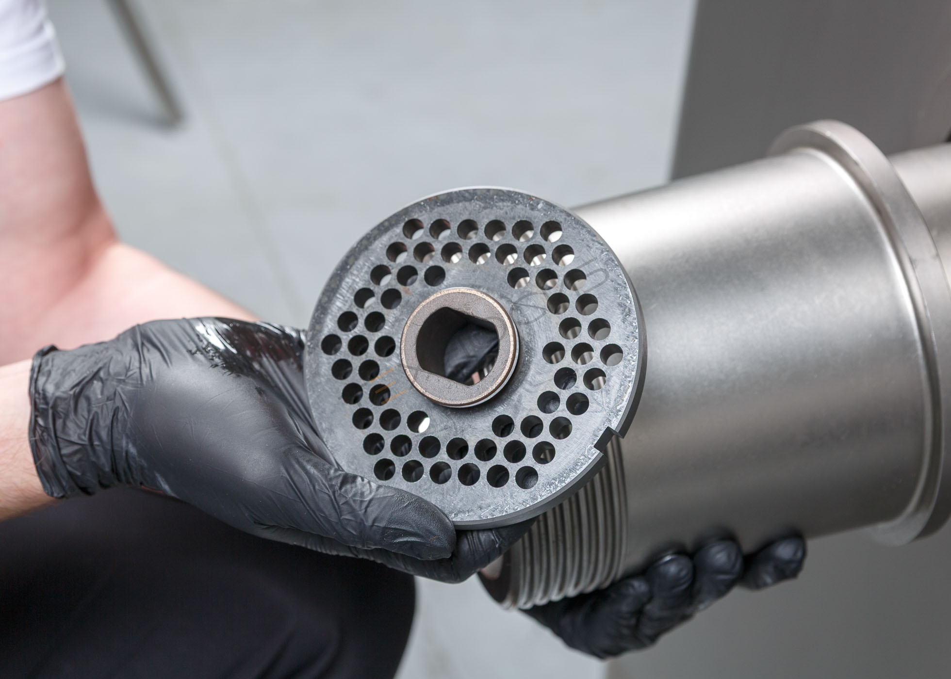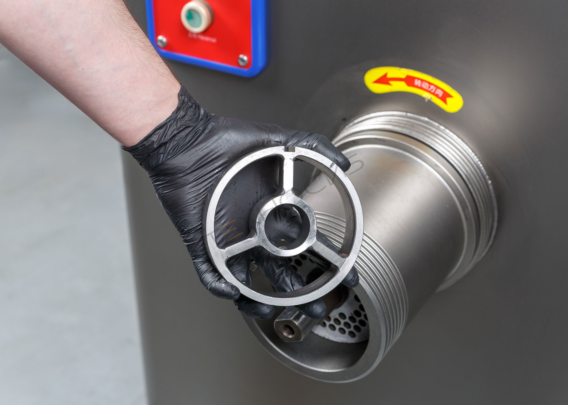 - Переменный шаг шнека — гарантирует равномерную загрузку режущего узла, благодаря чему фарш имеет стабильную структуру и высокое качество.