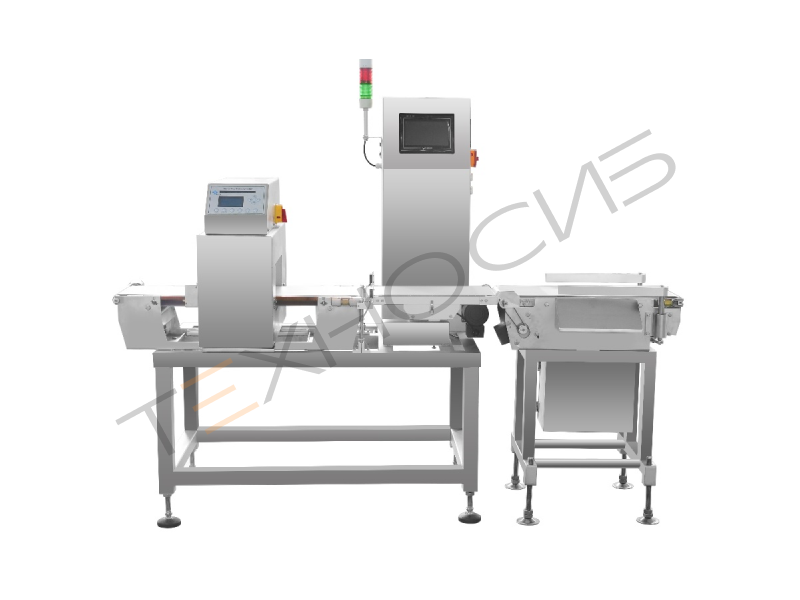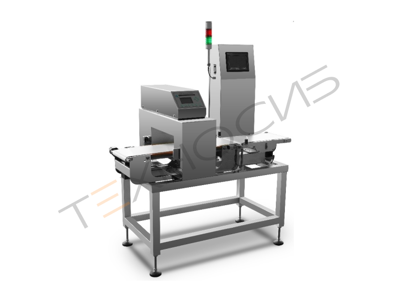 IMC-300– это универсальная комбинированная модель инспекционного оборудования, которая состоит из металлодетектора и системы весового контроля продукта- чеквейра (CheckWeigher). Сначала продукт, поступающий по транспортеру проходит контроль на предмет включения металлических частиц, а затем контрольное взвешивание. Если находится несоответствие заданным параметрам, то продукт удаляется из общего потока. Весь процесс происходит на высокой скорости.