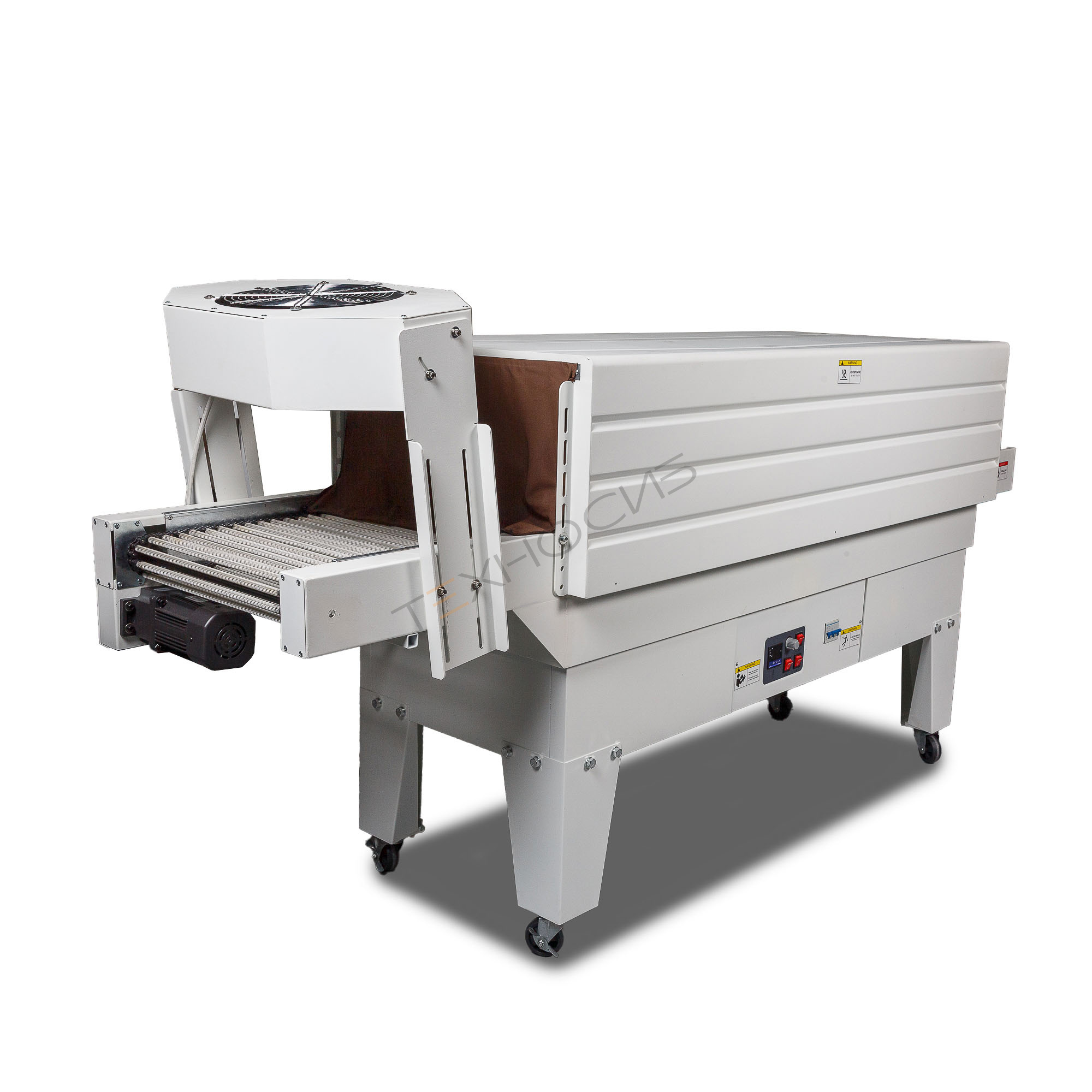 6. После прохождения усадки на выходе из термотоннеля упаковка охлаждается вентилятором обдува и снимается с транспортера.