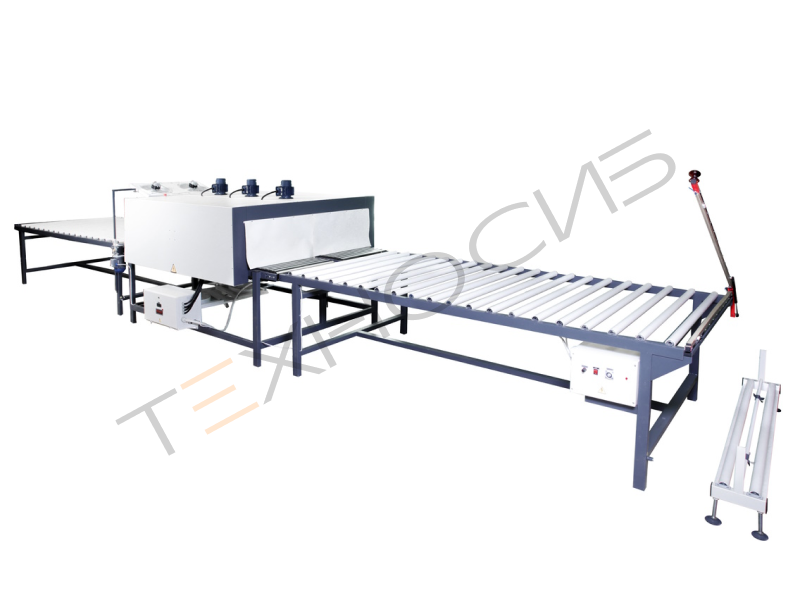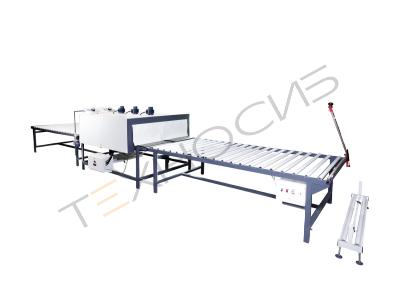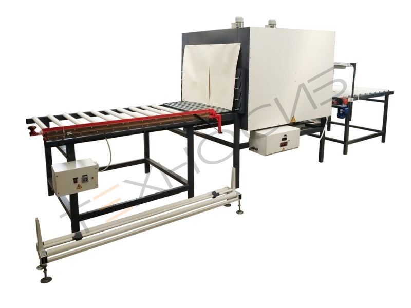 - приемный рольганг имеет систему охлаждения продукции – при выходе из термотоннеля изделие попадает в зону охлаждения для придания упаковки стабильности и прочности;