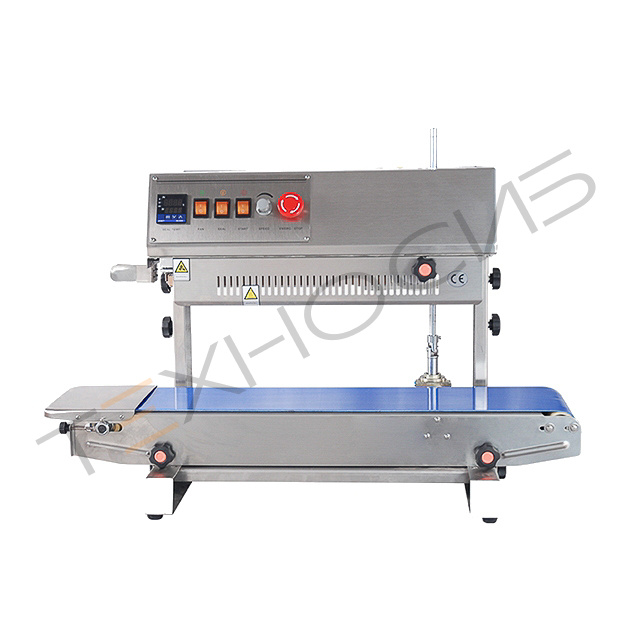 Конвейерный роликовый запайщик пакетов FR-770II - устройство, предназначенное для запайки готовых пакетов, без ограничения по длине шва. Исполнение корпуса запайщика из нержавеющей стали. С помощью температурного регулятора устанавливается подходящая температура нагревательных элементов, так же запайщик имеет механизм плавной регулировки скорости протяжки пакета, изменяя вместе эти два параметра можно добиться очень качественной проварки шва пакетов из самых различных по составу и толщине термосвариваемых материалов. Ширина шва запайки составляет 10мм. Модель FR-770II имеет вертикальное исполнение – пакеты укладываются на транспортер в вертикальном положении. Данный вариант подходит для жидких, сыпучих продуктов, пакеты с которыми невозможно запаивать в горизонтальном положении.